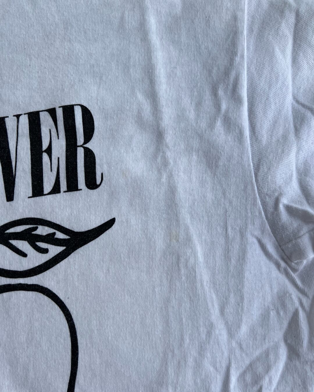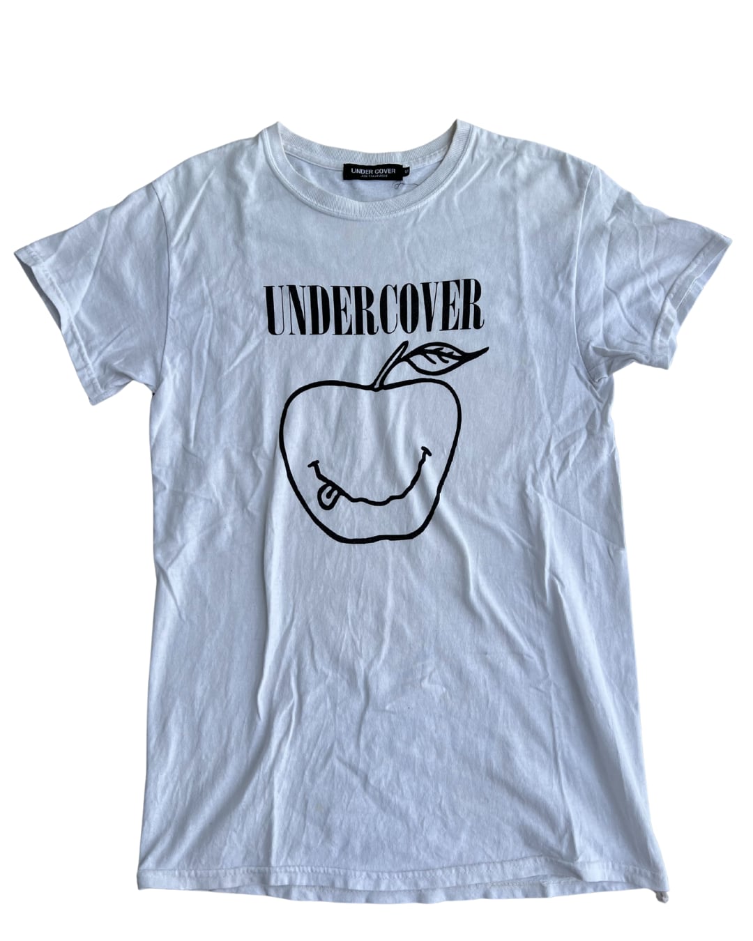 どことなくチープ感のあるリンゴのイラストが最高です。テーラードとレイヤードしてカジュアルに着崩しても、1枚で着て首元にストールやネクタイを巻いてかわいさを押し出してもよさそうです。
